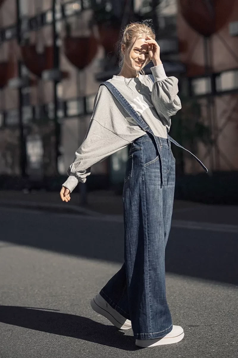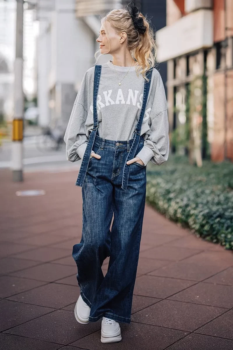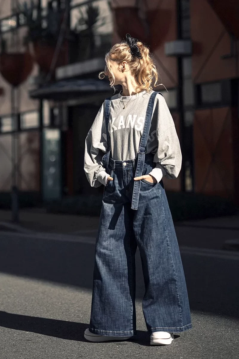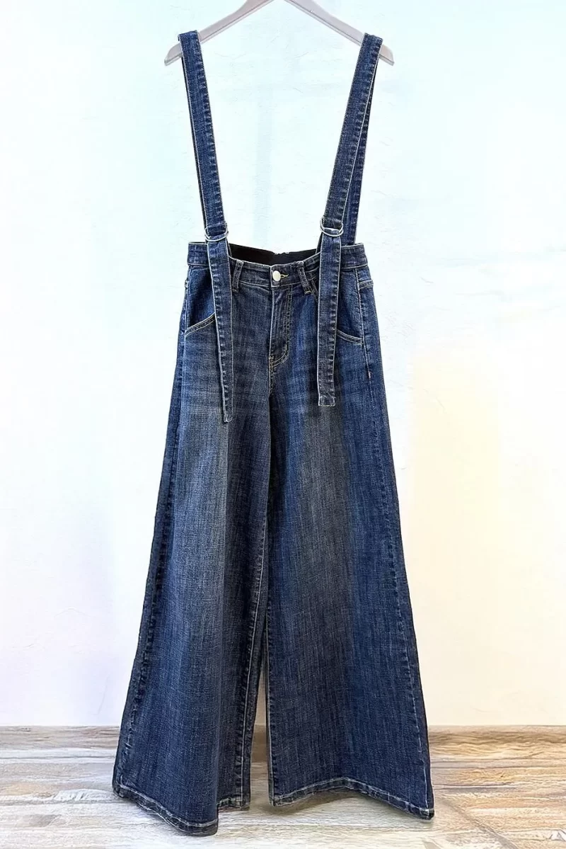 【サスペンダー ワイドデニム】 クラシカルなサスペンダーと、美しいワイドラインが目を引くデニム。 ゆったりとした落ち感が、スタイルを品よく見せながら、 どこかレトロなムードを漂わせます。 ニットやファーと合わせると、冬のコーデが一段とこなれた印象に仕上がる一本です。
