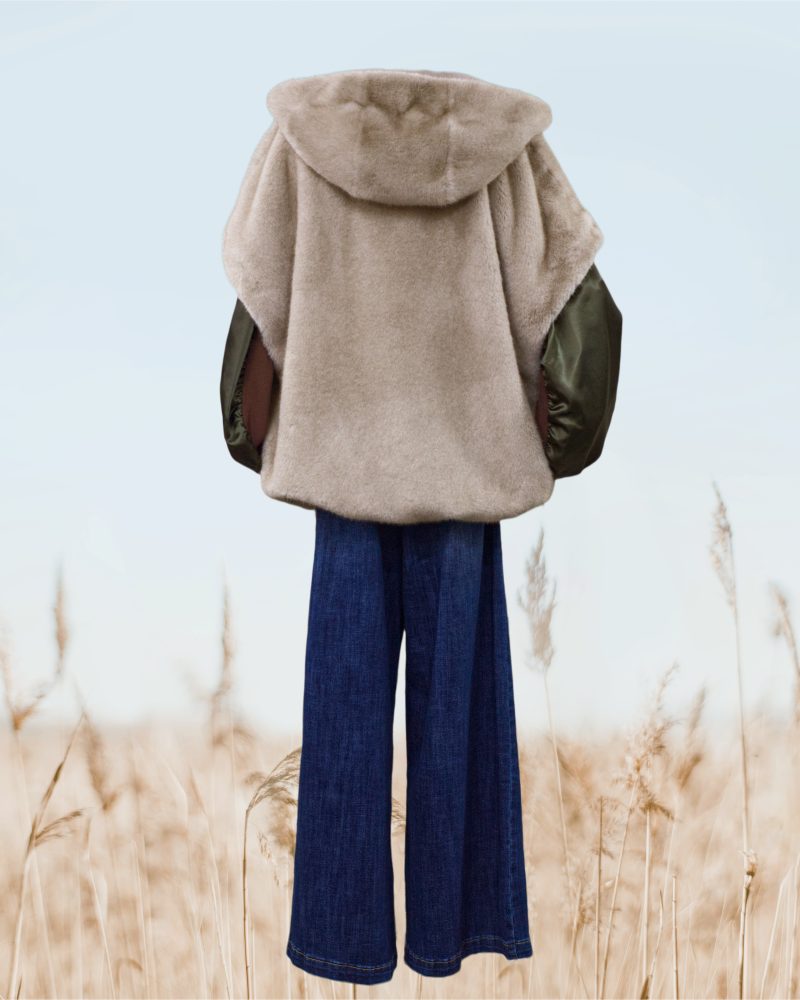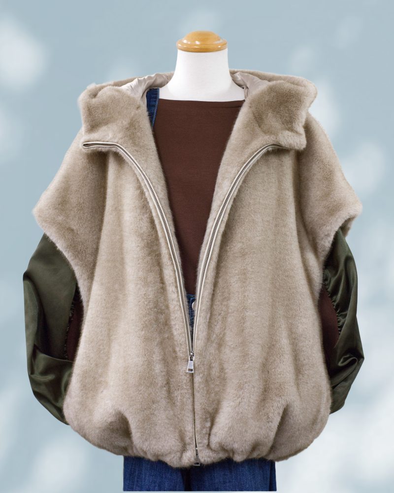 【ゆるファーベスト】 ふんわりとした“ゆるファー”の質感が、冬の装いに可愛らしい雰囲気を添えてくれる一枚。 肩が落ちるリラクシーなシルエットながら、ニュアンスのある素材感が 大人の女性らしいやわらかさを引き立てます。 シンプルなトップスに重ねるだけで、気ままに着こなしてもサマになる主役アイテムです。