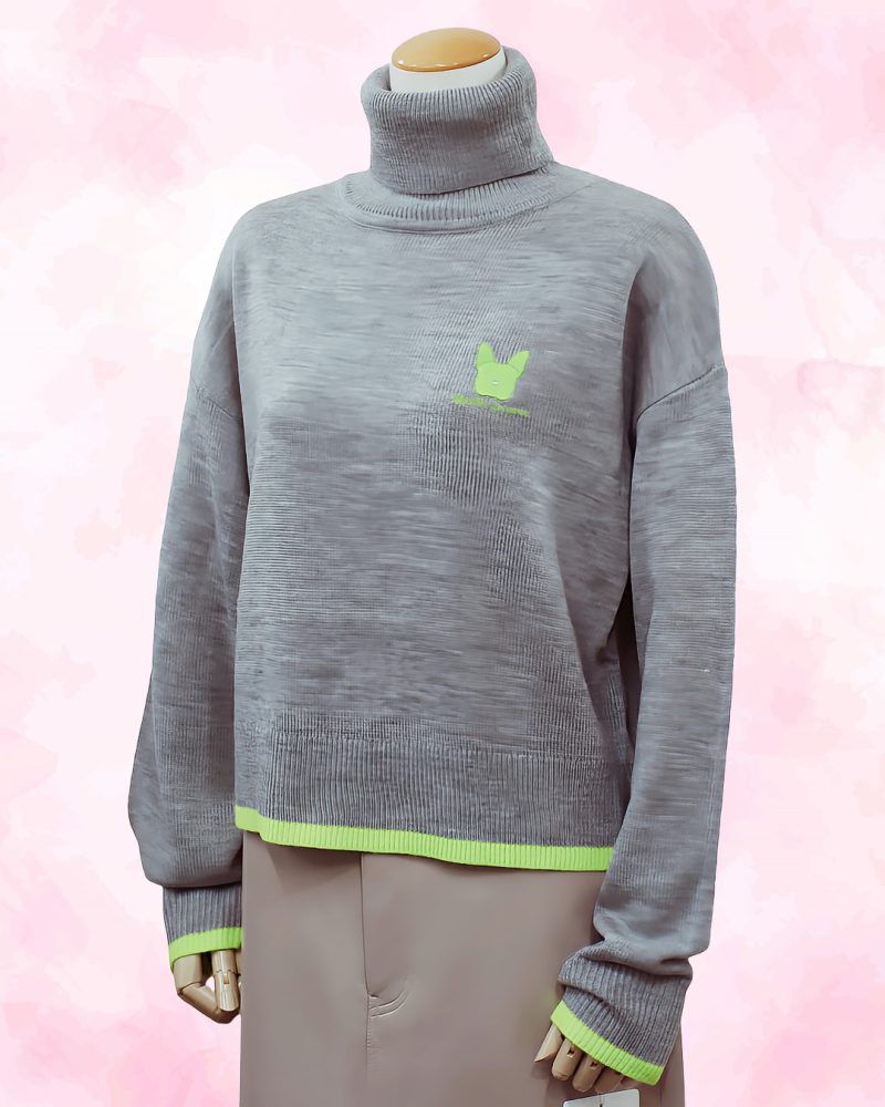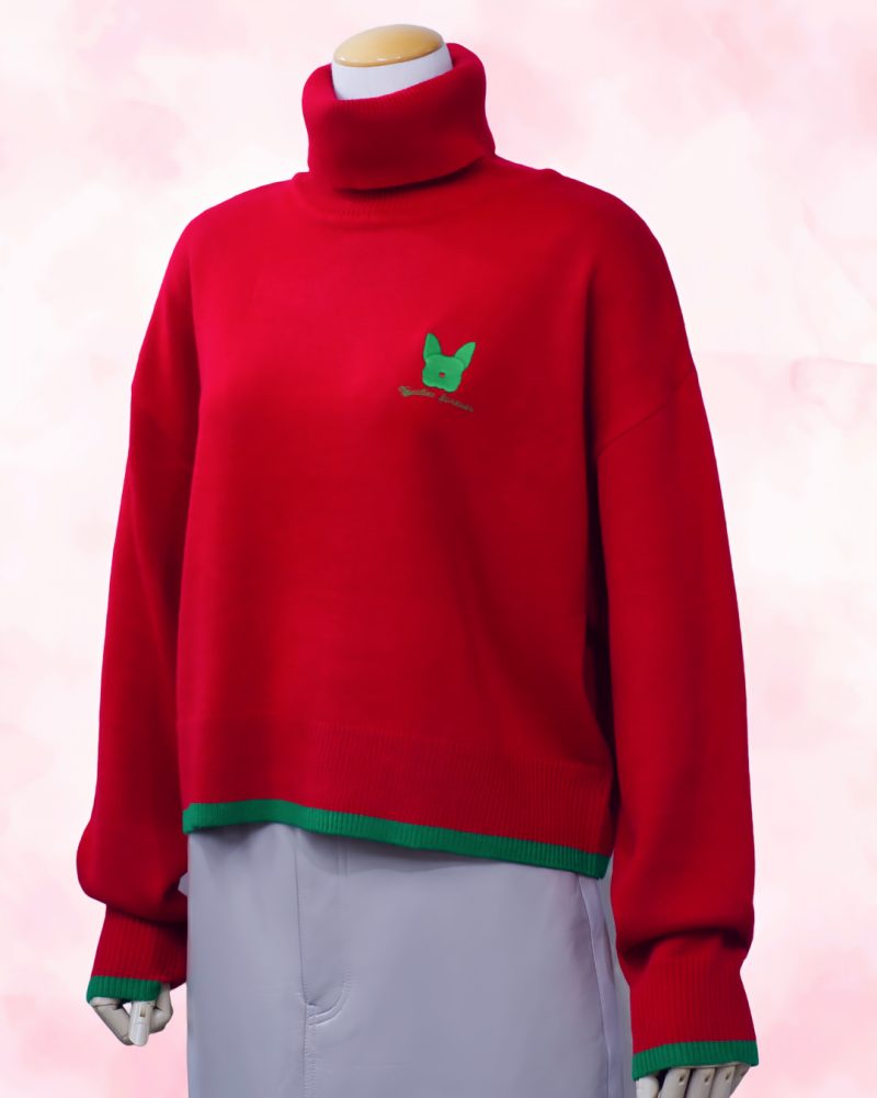 胸元にそっと添えられた、わんちゃんの刺繍。 はっと目を引く発色と、さりげない配色ラインが印象的な 遊び心のある 配色タートルニット。 ややゆとりのあるシルエットに、首元をやさしく包み込むタートルネック。 一枚でしっかりと存在感がありながら、着心地は軽やかで、 日常にすっとなじむバランスの取れたデザインです。 裾と袖口に効かせたコントラストカラーが、 コーディネートに程よいリズムを生み、 シンプルなボトムスと合わせるだけで、自然とスタイルが完成します。 胸元には小さなワンポイントモチーフを添えて、 大人の遊び心とさりげない可愛らしさをプラス。 パンツにもスカートにも合わせやすく、 冬のデイリーコーデから少し気分を上げたい日まで、 幅広く活躍してくれる一着です。