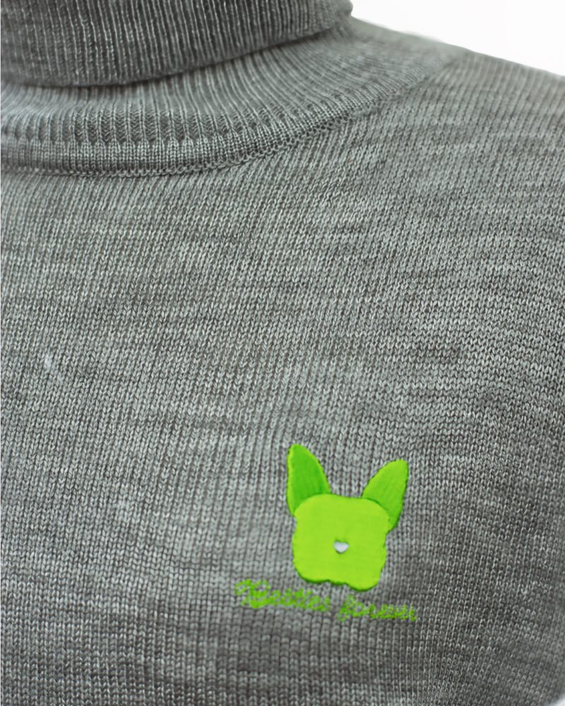わんちゃん刺繍タートルニット