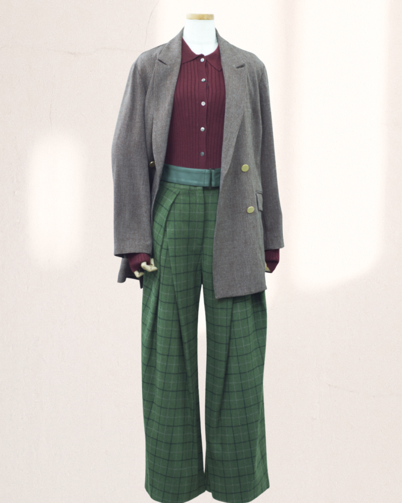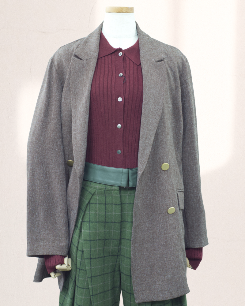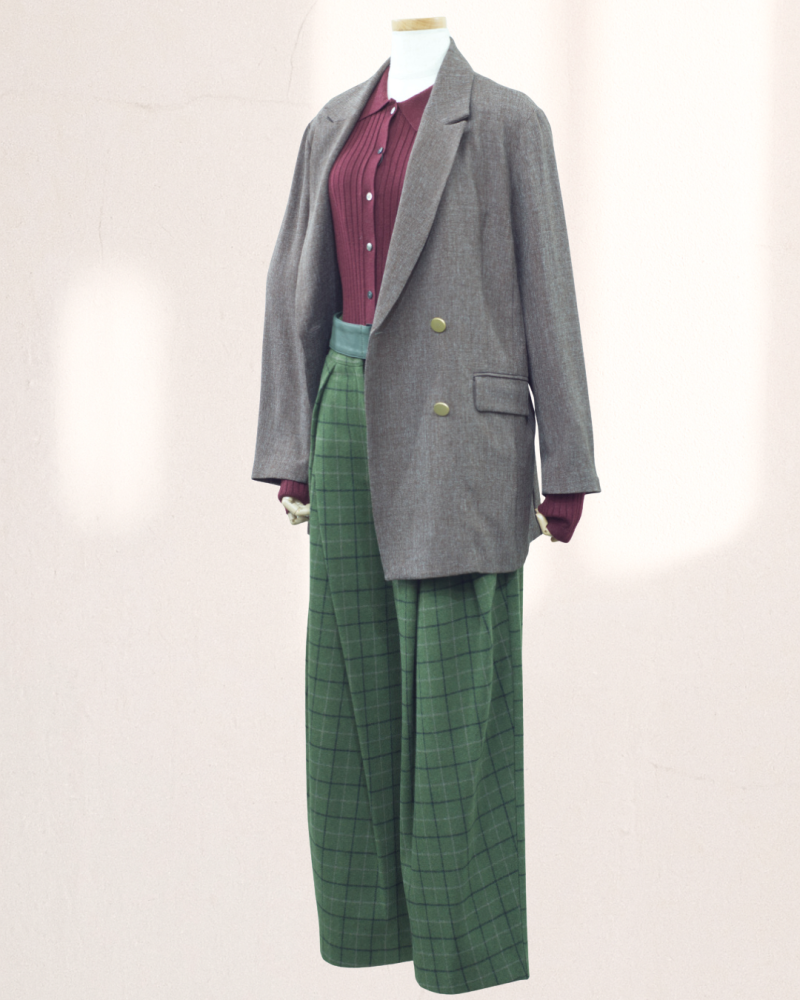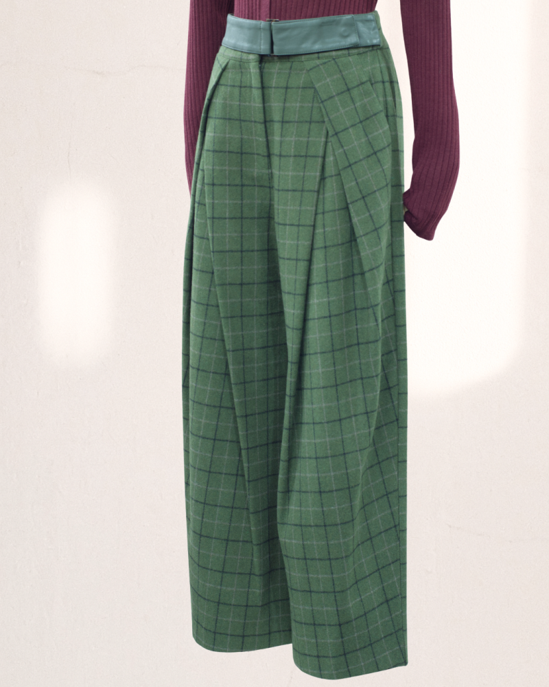 【フロントに入れたタックは、 分量を調整するためのものではなく、 身体が入ることで立体と動きが出るように設計された デザインタック。 平置きで見るよりも、 はいたときのほうがシルエットに表情が生まれ、 コーディネート全体に奥行きを与えてくれます。 このパンツを起点にトップスやジャケットを合わせると、 いつものスタイリングよりも少し感度の高い、 新鮮なバランスに仕上がります。】