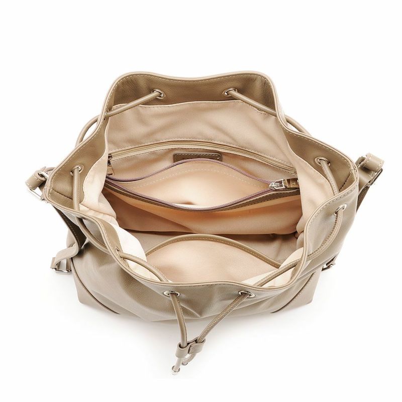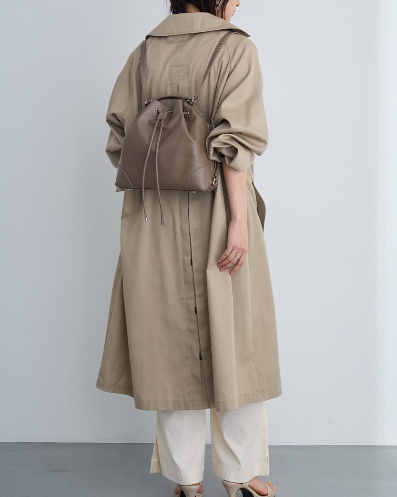 開閉は引き紐タイプで、荷物の出し入れもスムーズ。ショルダー部分を横に引けばリュックスタイルに、縦に引けばトートバッグとして使える便利な2WAY仕様になっています