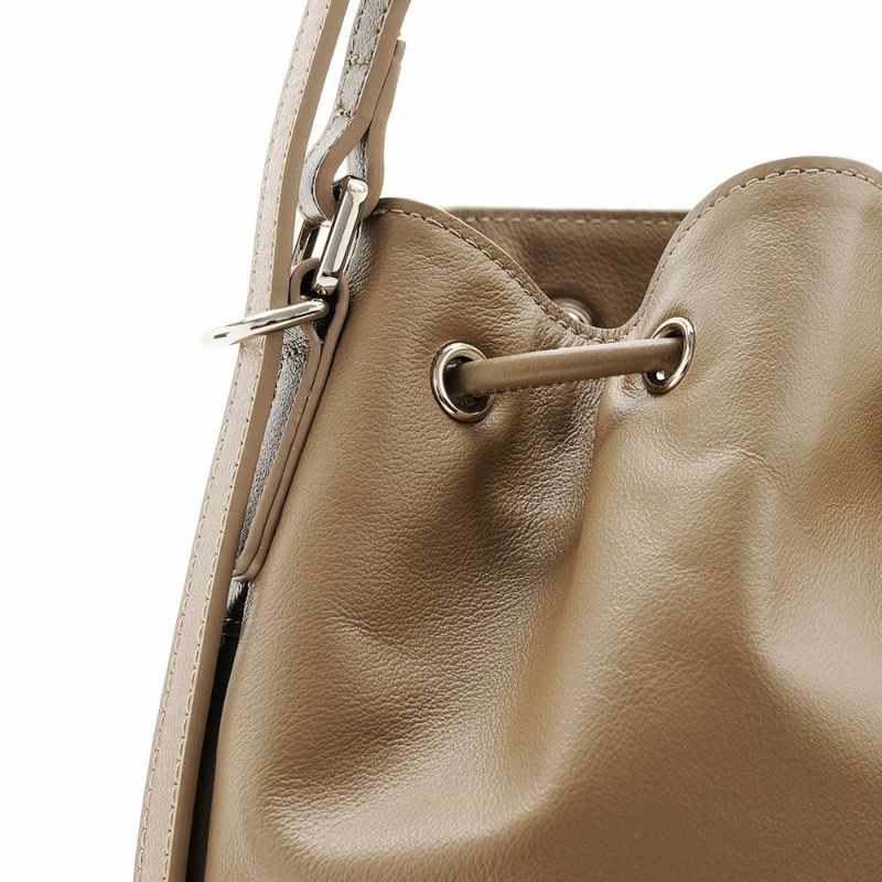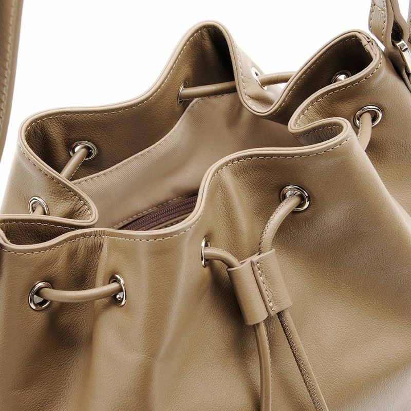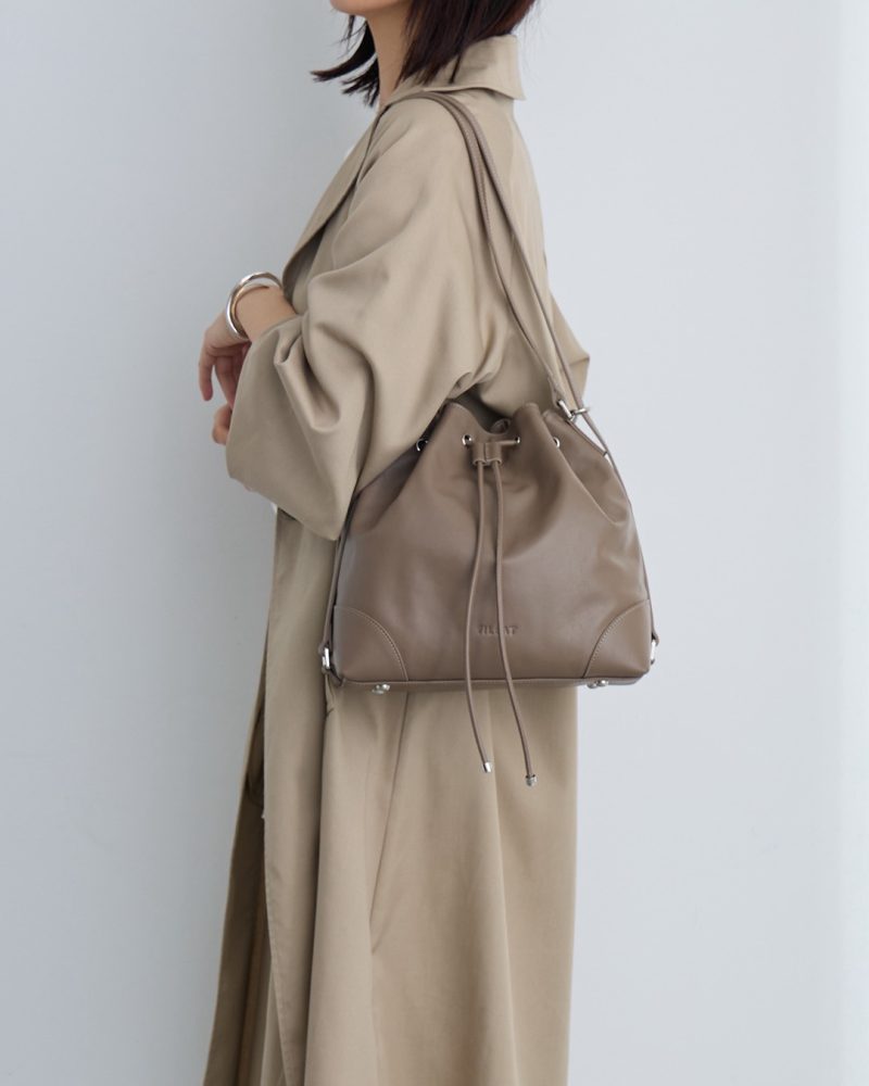 【ギャザーデザインがモードカジュアルな雰囲気の本革バッグ。】