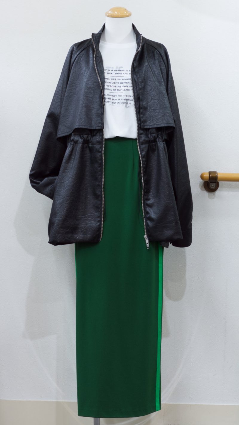 【冬コートの重さから解放されたい時期に、 さらりと羽織れる軽量ミドルアウター。 軽やかな素材感で、 見た目以上にストレスのない着心地が魅力です。 着丈は使い勝手のよいミドル丈。 パンツにもスカートにもバランスよく合わせやすく、 季節の端境期に一枚あると重宝するポジションです。 背中には、動きに表情を生む ケープヨークデザイン を採用。 マニッシュな雰囲気の中に、 立体的なニュアンスが加わり、 シンプルなコーディネートでも “ただのブルゾン”で終わらない存在感に。 前を開けて軽快に、 ジップを上げてシャープに。 気温も装いも揺れる季節に、 スタイリングの幅を広げてくれる一着です。 冬コートの次に選びたい、 “Between Winter & Spring” にちょうどいい羽織りです。】