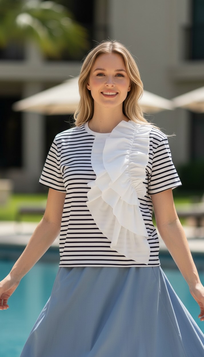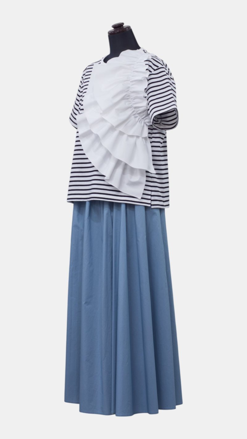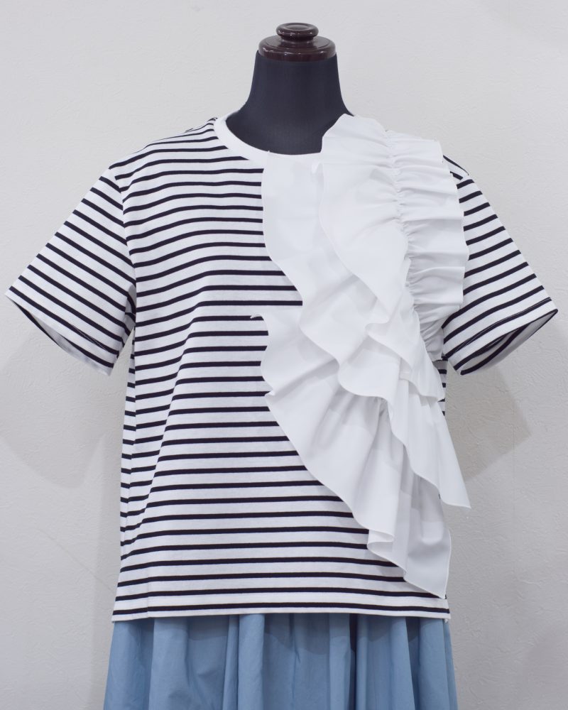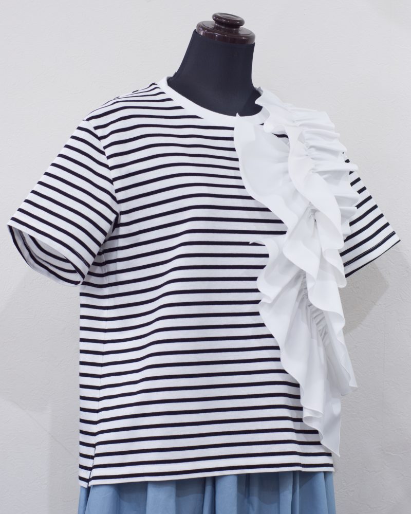 ・「ボーダーってカジュアルだけど、このフリルで一気に華やぐから好き。」