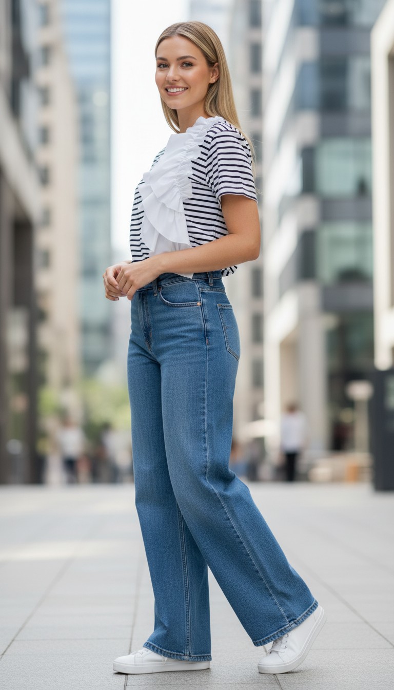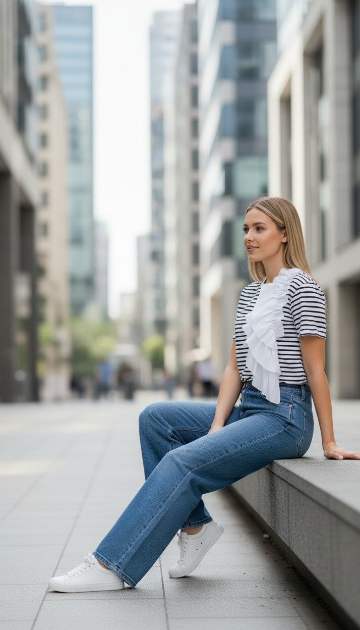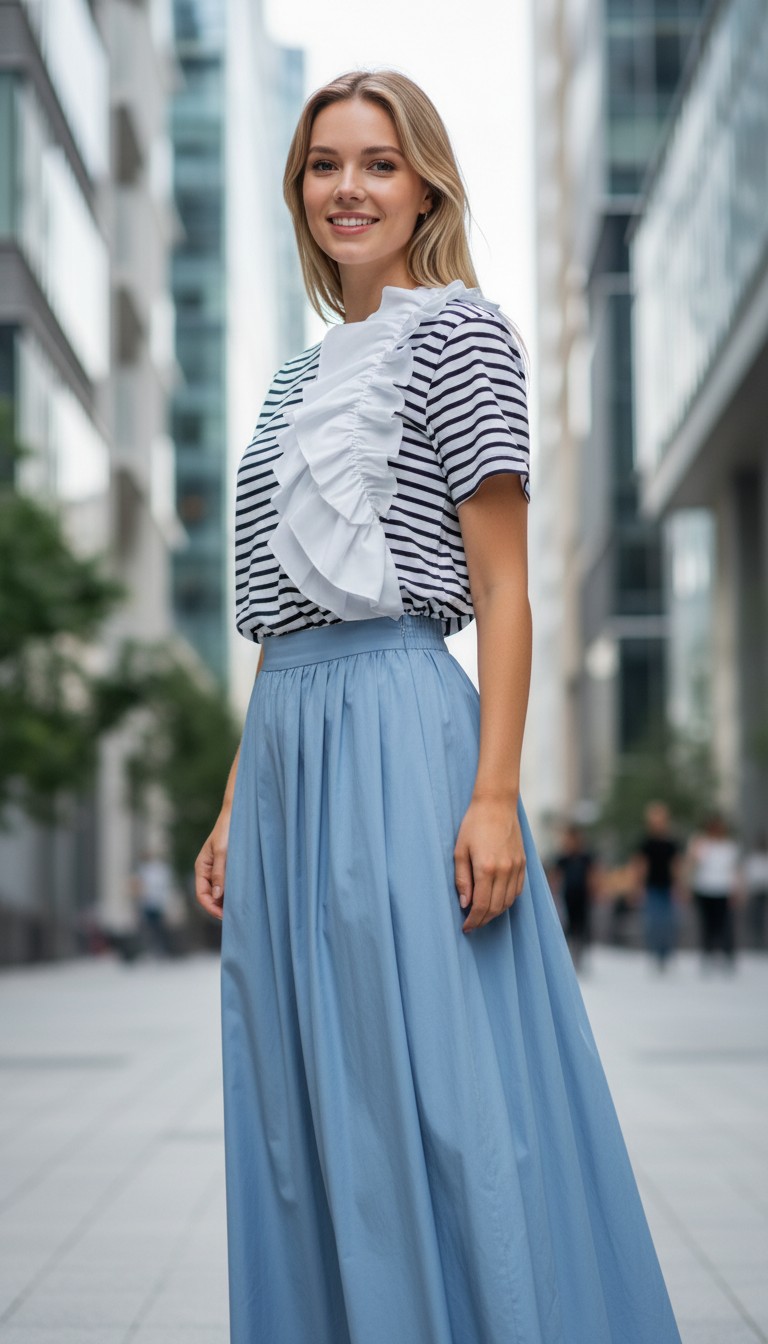 ・「ボーダーってカジュアルだけど、このフリルで一気に華やぐから好き。」